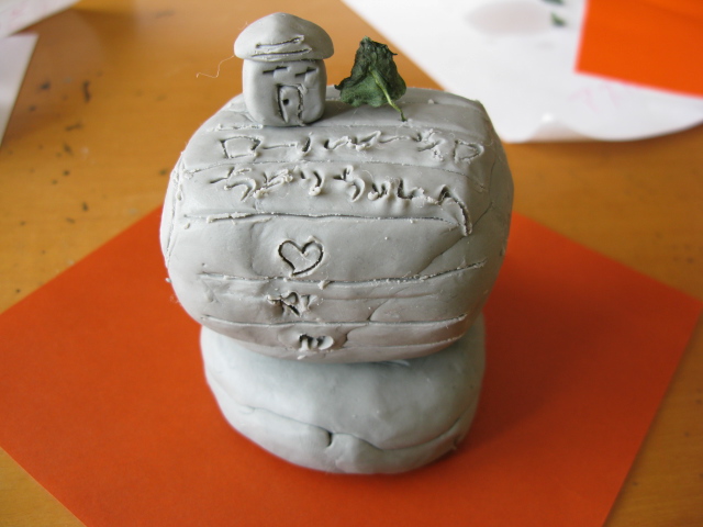 ヒメのネンドケーキ第2弾。てっぺんに小さな家が乗ってます。