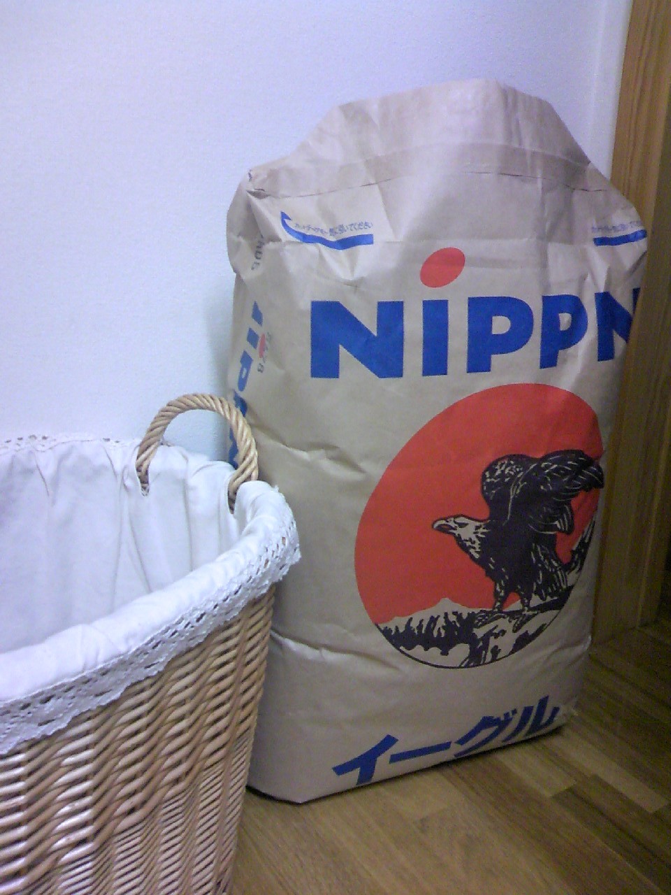 強力粉が最近高くて、困りますね。知る限りの最安値である、ネット販売25㎏入りを愛用しています。前回のが無くなったので、新たに購入。どすんと届きました。