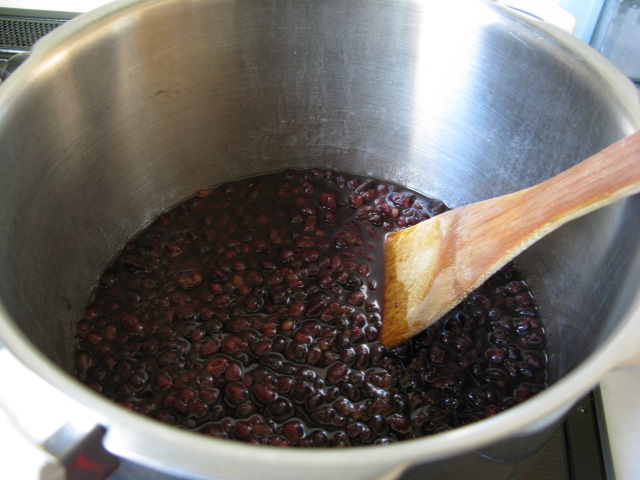 時々かき混ぜないと焦げます。くつくつと煮て、つぶあん状態になったらおしまい。