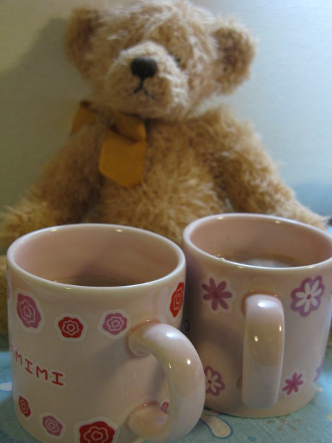 ヒメとマナお気に入りの、マザーガーデンのカップ。毎晩お風呂に入った後に、ココアを飲むのが日課です。
