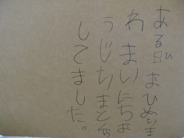 ある日、おひめさまわ、まいにちおうじさまとくらしてました。