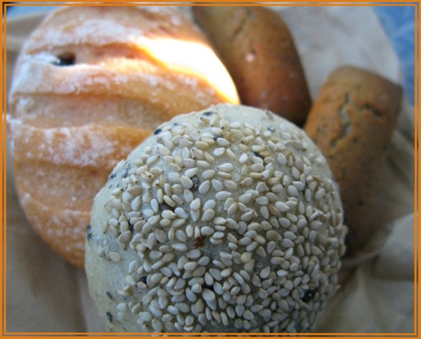 手前のゴマのパンは、中にあんこが入っています。その奥のパンはトマトオリーブ。スペイン産のブラックオリーブだそうですが、風味があっておいしかった。