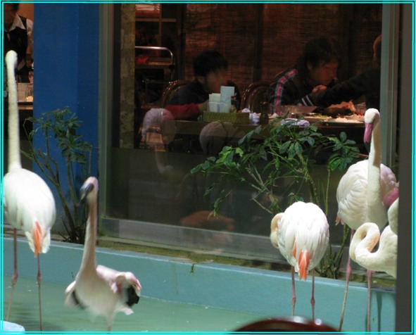 メヒコって、確かシーフード系で、大盛りのピラフが有名だったような・・・、程度の知識で行ったのですが、車を降りて先を歩いたボン(小6 普段は冷静沈着)が、「ママさん!!フラミンゴがいるんだけど!!」と興奮気味。