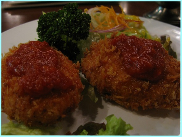 お食事は、ワタシが「かにクリームコロッケ」。割と、あっさりとした味で、衣がさくさくして美味。