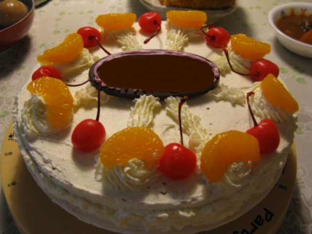 レシピどおりにやったのに、ゼラチンが分離して、舌ざわりが今ひとつになっちゃいました。デコレーションも、まだ下手だし。クリームのちょうどいい固さが、未だにつかめません。