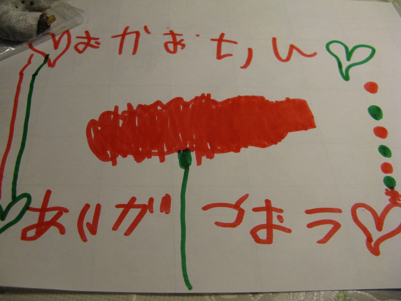 「おかあさん、ありがとおう」と書いています(^^)