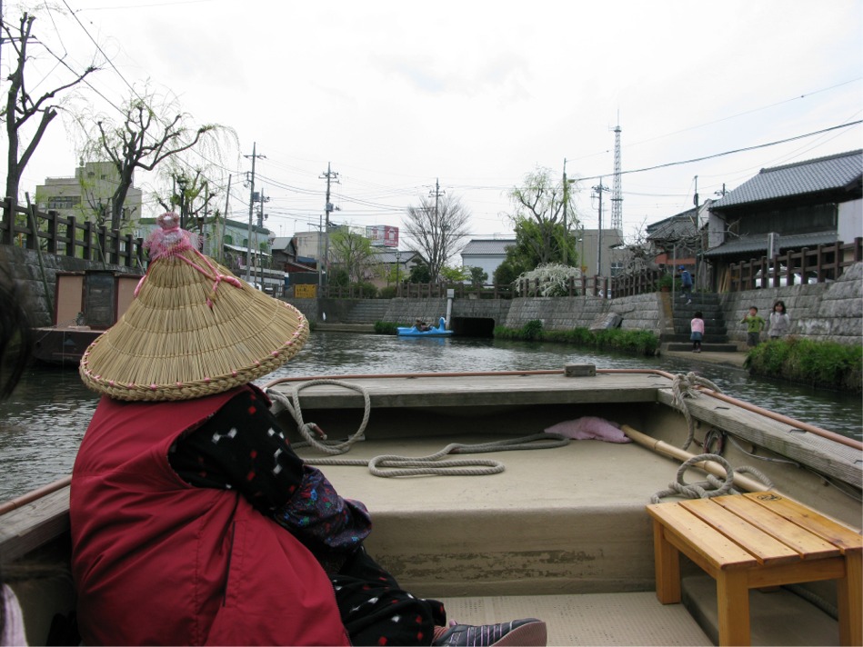 昼食の後、お団子を買って、船くだりに乗りました。大人1人、小学生2人、幼児で2,700円でした。幼児は無料だったような。