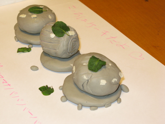 ヒメのネンドケーキ第2弾。てっぺんに小さな家が乗ってます。