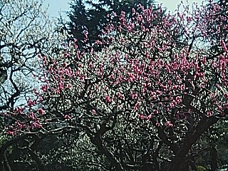 空はくっきりとした青、コートを脱ぎたくなるくらい、ふんわりと暖かく、桃色と白色の梅がたくさん咲いていて、最高に気持ちよかったです。