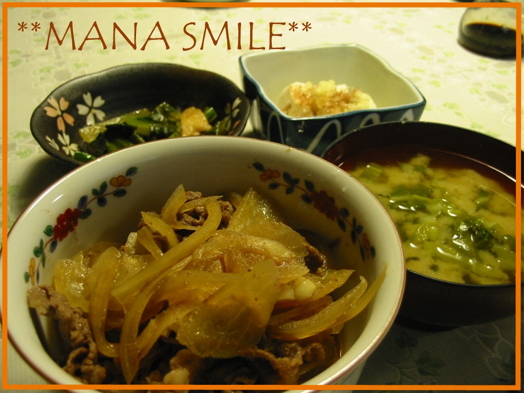 牛丼・小松菜と油揚げの煮びたし・湯豆腐
