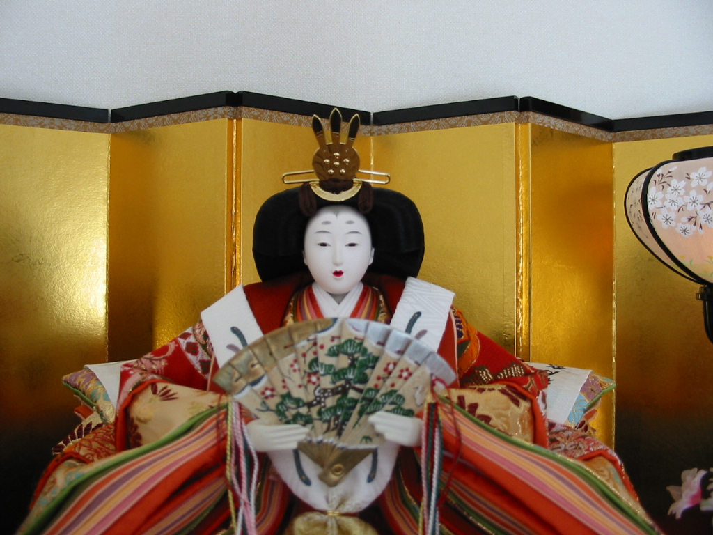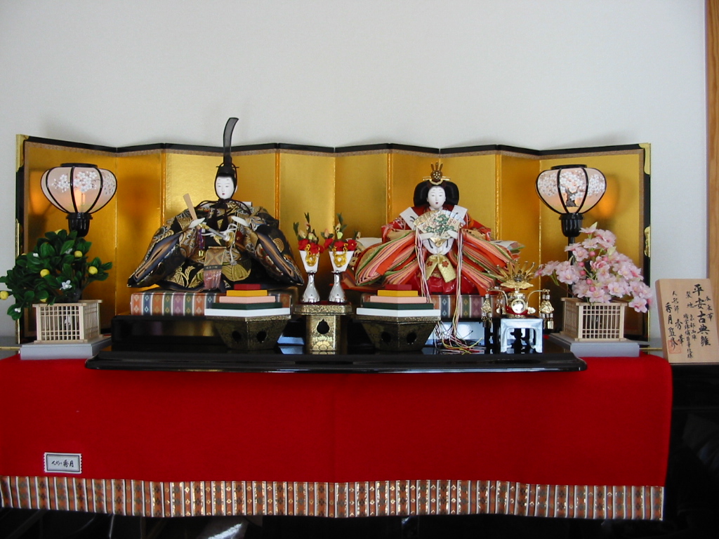 家では、ひな人形を飾りました。場所は、アップライトピアノの上。位置高すぎです。