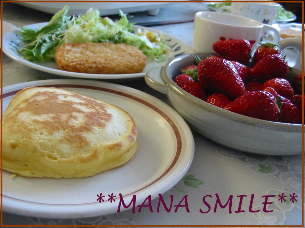 ←今日の朝ごはん。いちごは、夫が特売で買ってきたもの。1パック250円。