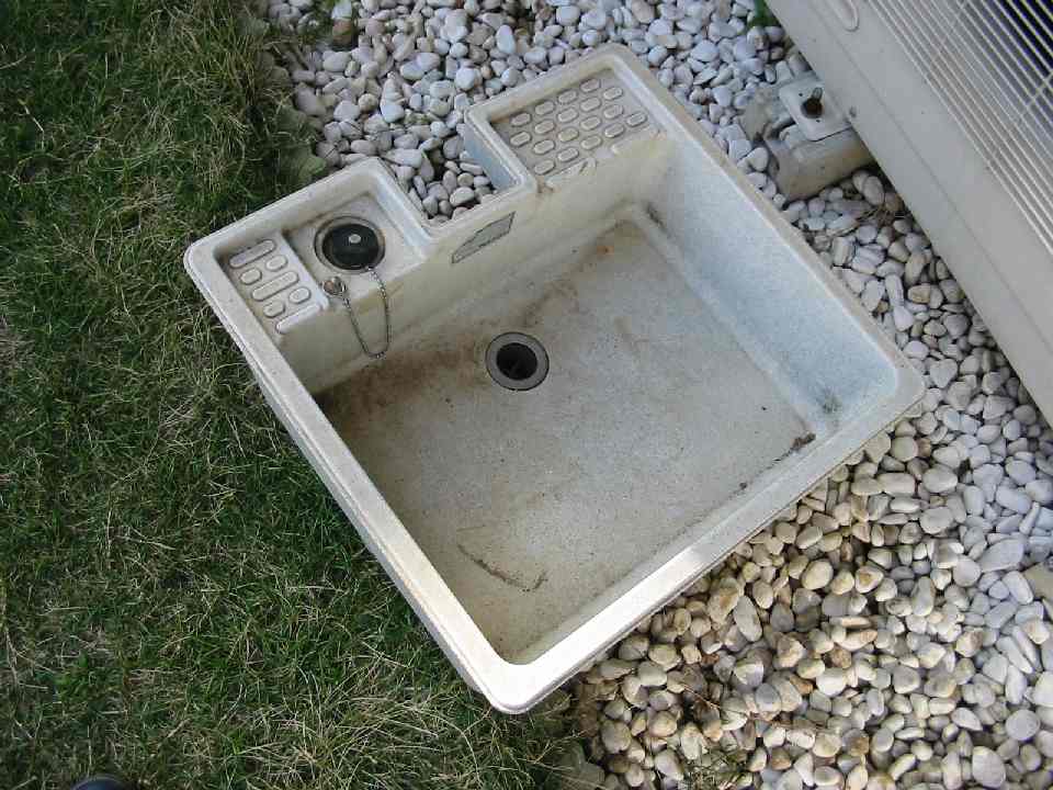 もともとの水受け。ただ、地面においてあるだけなので、よっこらしょと持ち上げるだけで、簡単に外す事が出来ます。