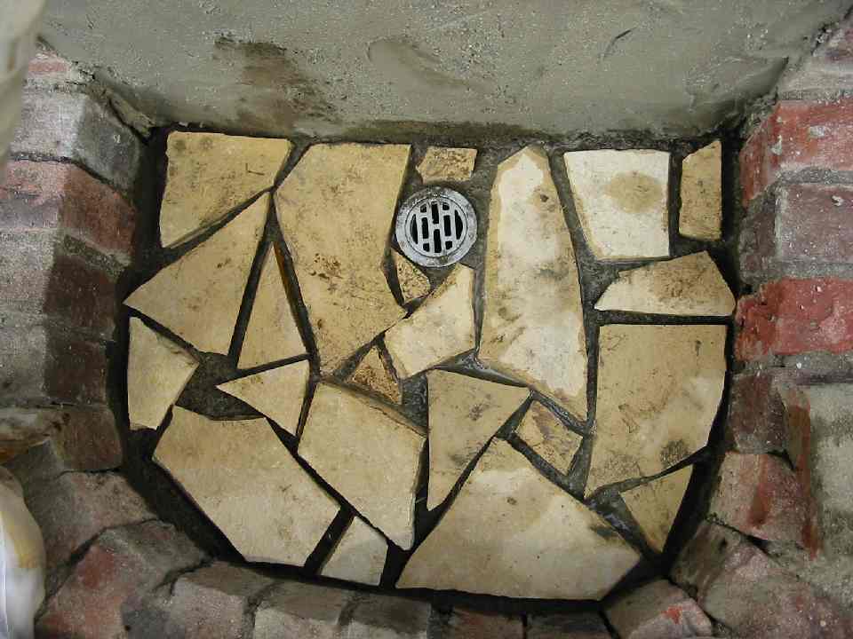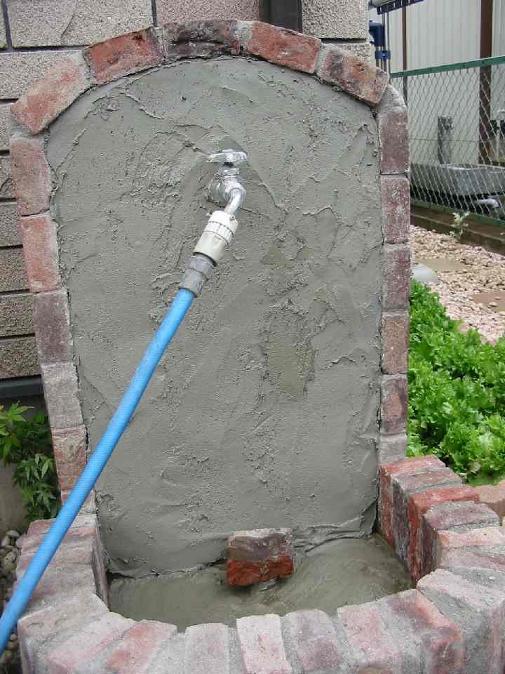 外観がおよそ完成。水受け部分には、水の流れ落ちる穴より少し低めにモルタルをつめておきます。