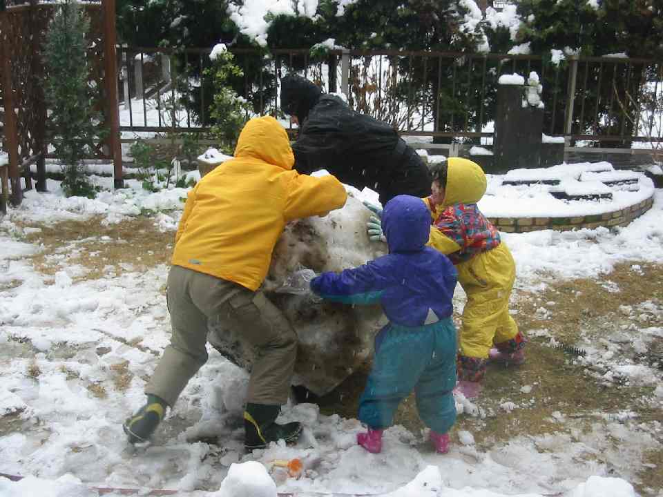 いつの間にか、こんな巨大雪玉を製作。うちの狭い庭だけでこんなに作れたのですから、結構な雪量だったように思います。