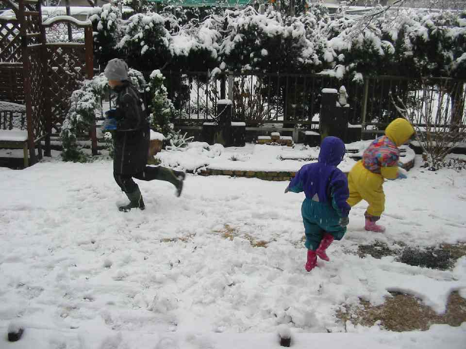 関東地方は、今シーズン初の本格的雪です。北国育ちのワタシは、小さい頃は毎日どっさりの雪と付き合っていましたが、うちの子ども達にとってはやはり新鮮。カーテンを開けた途端に歓声でした。お下がりのスキーウェアを着込んで、一日中外で遊びました。