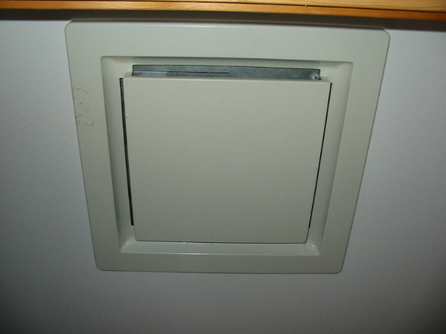 1.これが、換気システムのフィルター部の外観。1階と2階にあります。うちの場合は、1階は洗面所上部、2階はトイレ前の廊下上部にあります。