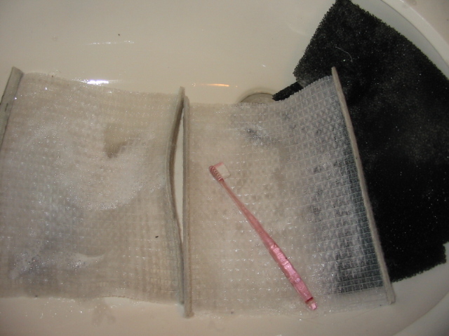 2.もともと、黒色の排気フィルターがこんなに汚れてる~!何を隠そう、洗うの3か月ぶり位です。こんなことではいけません。ブログを書くヒマがあったらフィルターの掃除をするべきです。