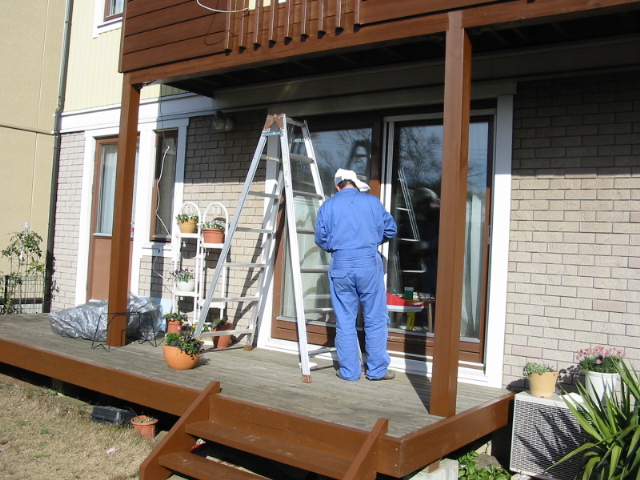 作業している自分。天井部なので、椅子やはしごが必要です。首や腰が若干痛みます。