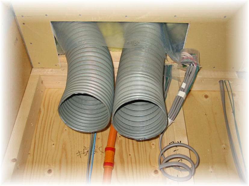松下製24時間換気システムのダクトです。当時、スウェーデンハウスの標準装備でした。1か月に一度フィルターの洗浄などのメンテナンスが必要です。大変ですが、このおかげで密閉性の高い住宅内部の空気がクリーンに保たれています。居住して6年経っていますが、常にとどまる「生活の臭い」が少ないように感じます。