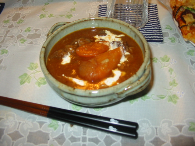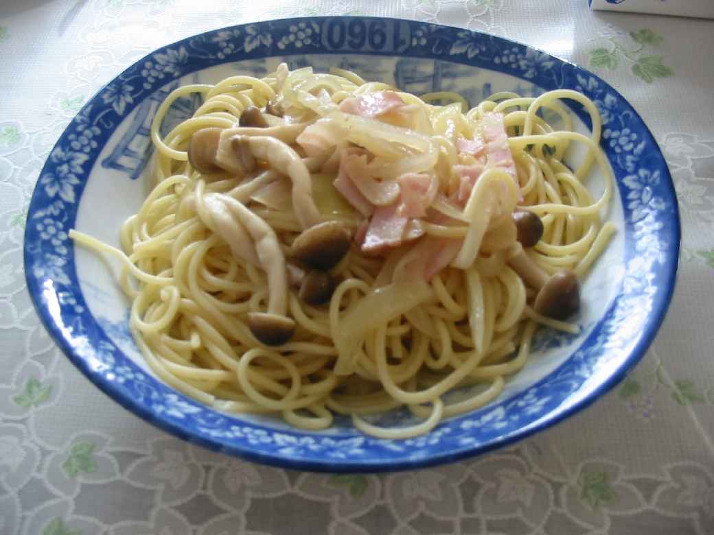 スパゲティは、材料を全て切り終えて、お湯もぐらぐらに沸き、さあ麺をゆでようと思ったら、6人家族なのに、200グラムしかストックがないことが判明。慌てて近くのコンビニまで、息子に買いに走らせました(おかげで安売りスーパーの倍の値段が・・・)。そのうえ、今日は母がお出かけ中で、5人分を作ればいいのに、6人分の麺をゆでてしまいました。