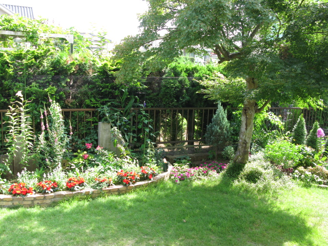 本日の庭。ひざしが強い。でも風があるので、しのぎやすいです。